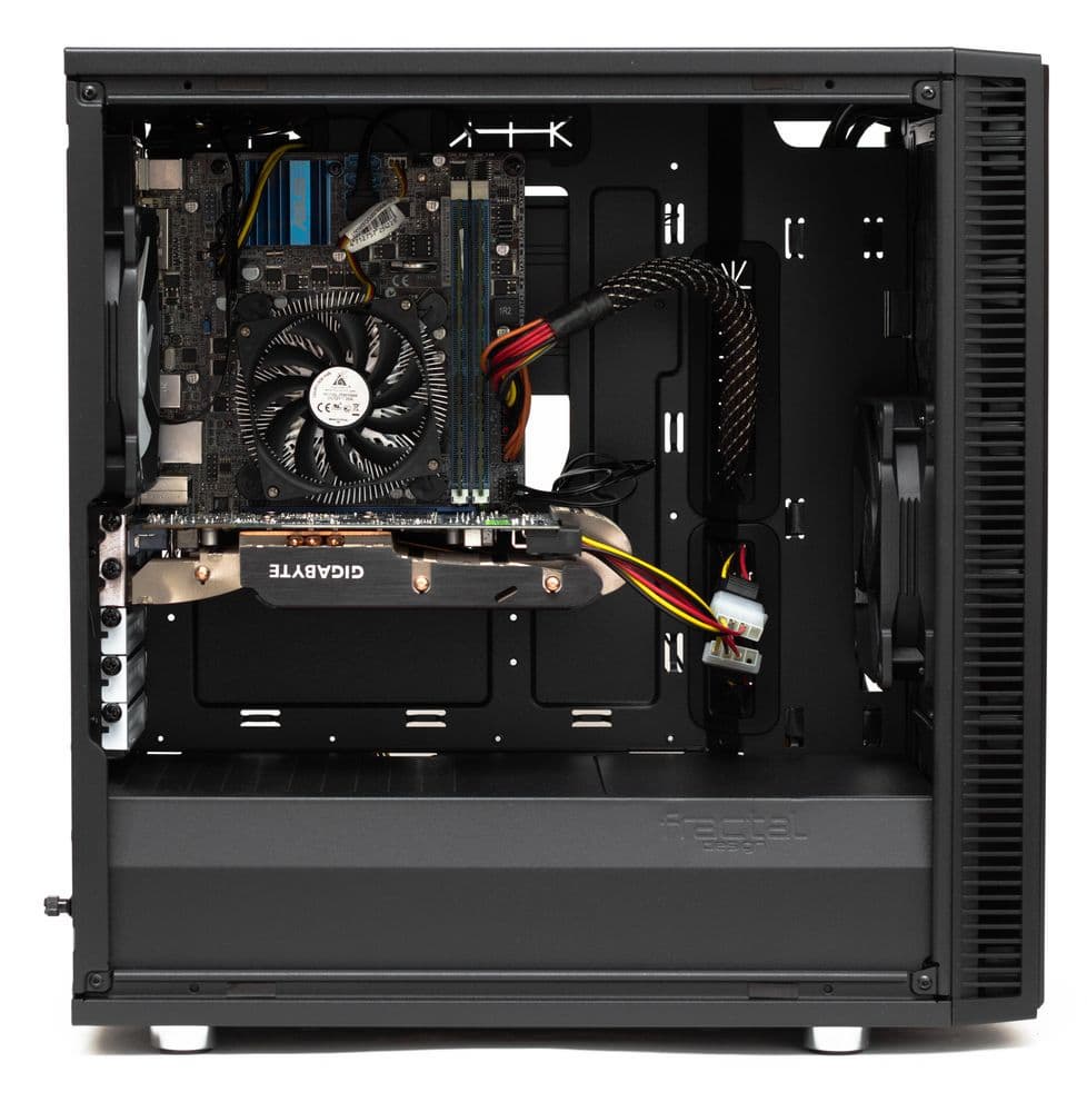 Проведенное тестирование показало, что при работе корпусных вентиляторов на штатных оборотах система охлаждения Fractal Design Define Mini C успешно справляется с охлаждением всех комплектующих, включая графический ускоритель с пассивным охлаждением и жесткий диск, находящийся, казалось бы, в крайне зажатых условиях и без дополнительного охлаждения.