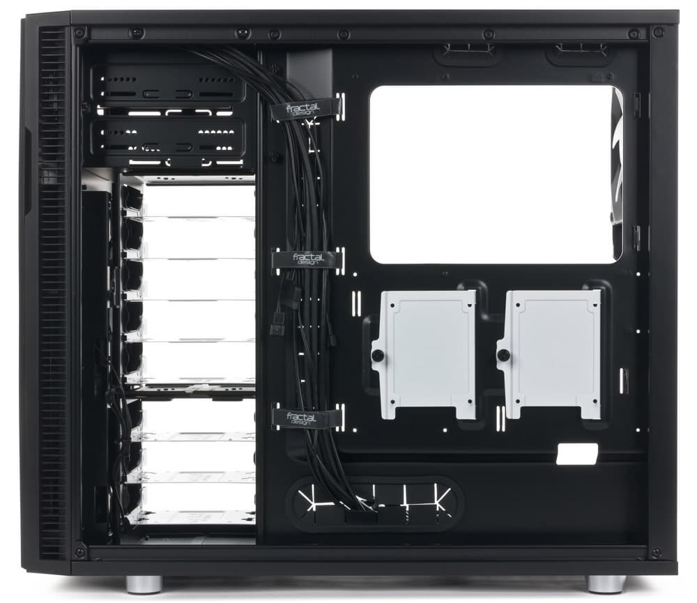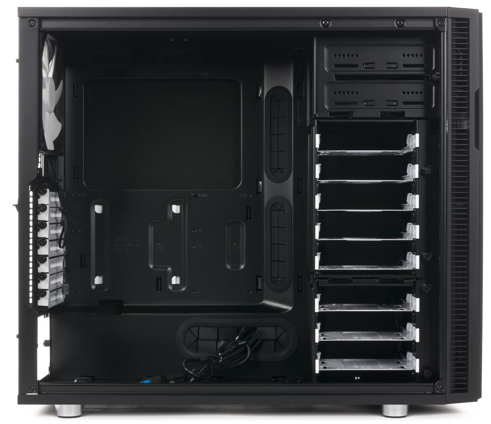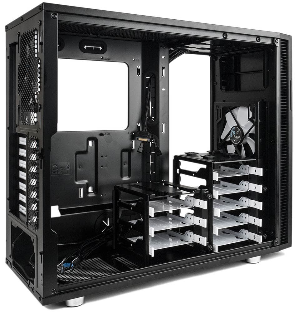 Благодаря системе мер по звукоизоляции, Define R5 наилучшим образом подходит для создания компьютеров с малым уровня шума. Правда, в компьютерах с очень большим выделением тепла придется пожертвовать звукоизоляцией, что также предусмотрено конструктивно.