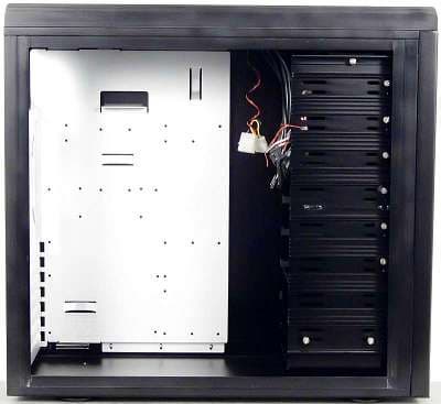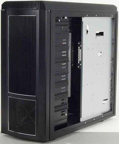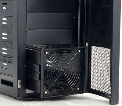 Установка и демонтаж блока питания проходят без особых сложностей даже при наличии в системе достаточно большого процессорного кулера, например, Zalman 9500. Этому способствуют достаточный внутренний объем корпуса и отсутствие дополнительных ребер жесткости.