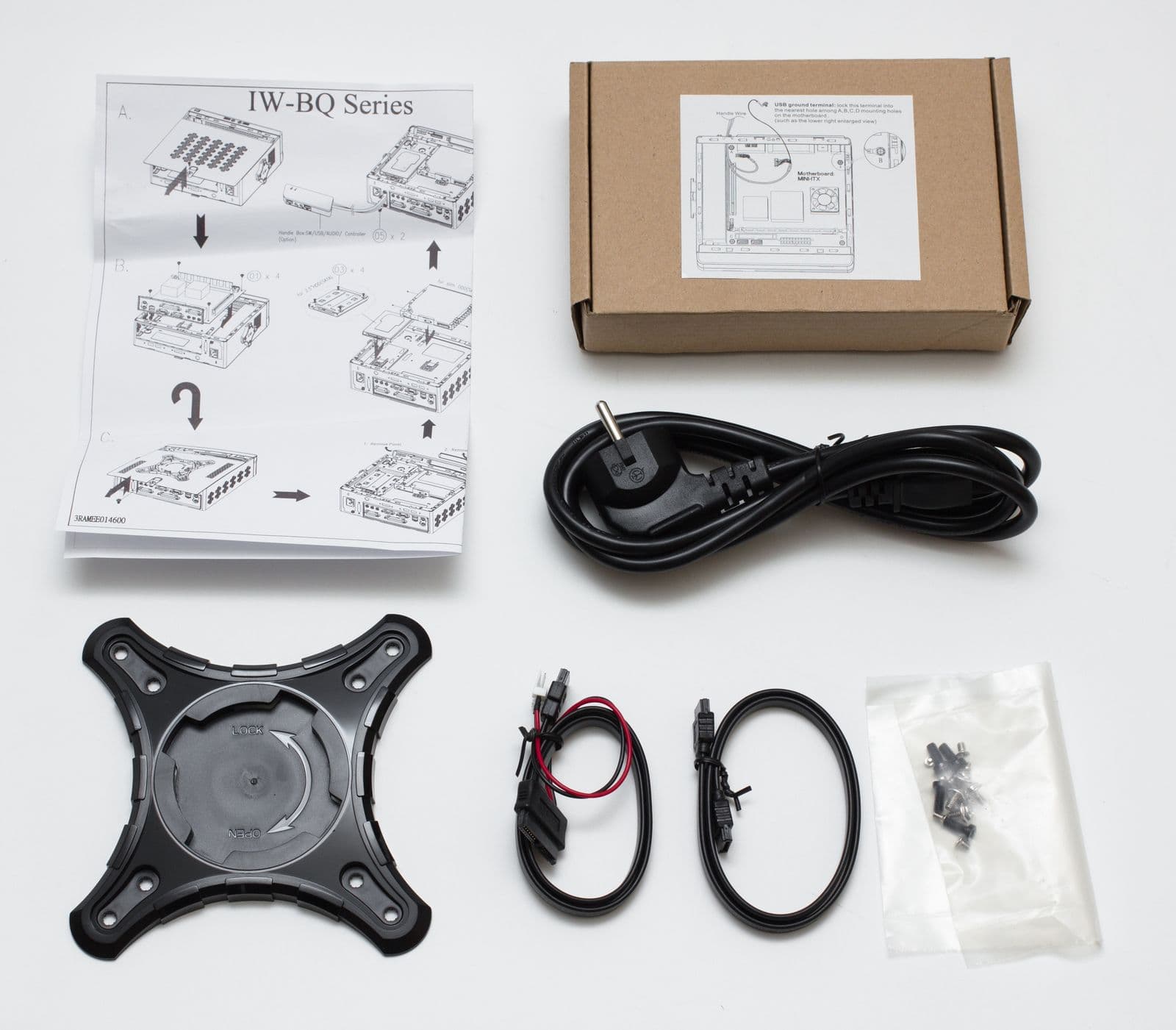 Инструкция по сборке выполнена на одном листе, в ней практически нет слов, весь процесс сборки схематично изображен на черно-белых иллюстрациях. Стоит отметить, что это первый Mini-ITX-корпус за последнее время, в комплекте с которым поставляется кабель для подключения оптического привода ноутбучного формата — приятно видеть такую заботу о пользователе в относительно бюджетном продукте.