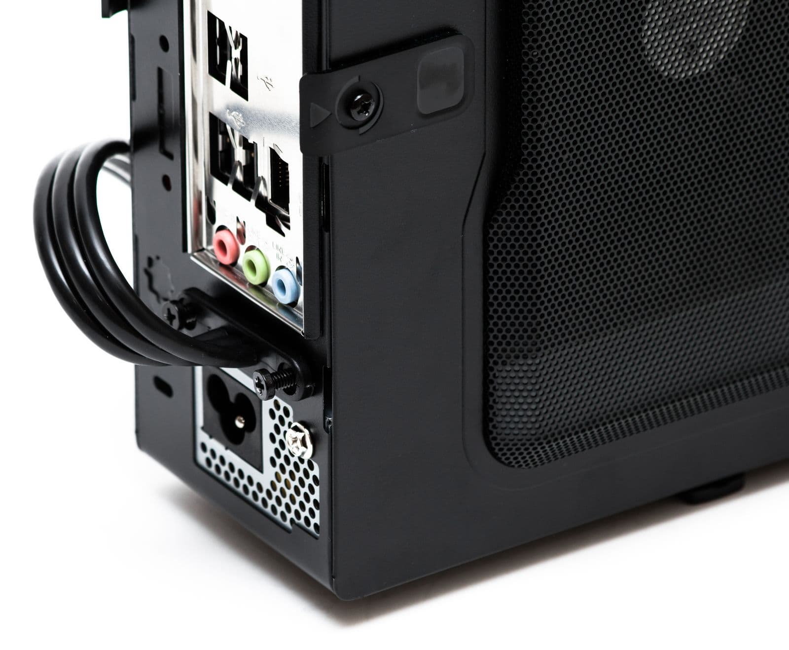 Для снятия блока питания нужно открутить всего 2 винта: один с внутренней стороны шасси и один со стороны задней стенки. Процедура извлечения и установки БП достаточно проста и не вызывает каких-либо осложнений. Единственное ограничение заключается в том, что блок питания невозможно будет демонтировать после установки системной платы — такова плата за компактность, ничего страшного в этом нет.