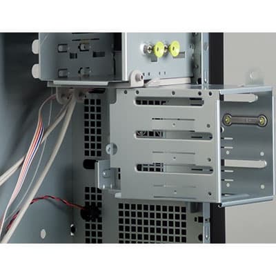 Здесь все до крайности прозаично. В комплекте поставки C589 нет корпусных вентиляторов, а посадочное место под дополнительный вентилятор всего одно — на задней стенке корпуса под вентиляторы типоразмера 120 мм. Таким образом, жестким дискам остается рассчитывать лишь на естественный обдув, которого будет хватить далеко не всегда.