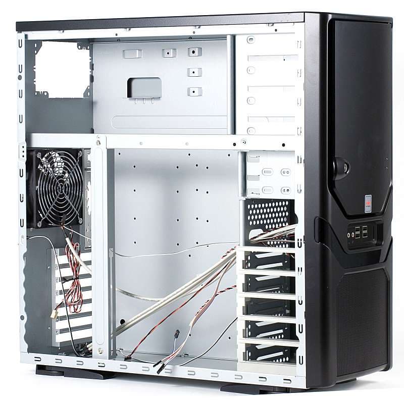 Вторым кандидатом был Cooler Master CM Stacker, в нём смутило опять же посадочное место для вентилятора на верхней панели, а также дороговизна и плохая доступность на нашем рынке важных опций — корзины для жёстких дисков и для 3,5" внешних устройств. Хотя продукт тоже во всех отношениях достойный.