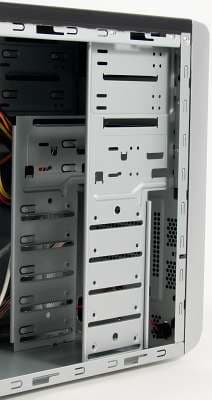 Без использования дополнительных переходников в корпусе возможна установка пяти жестких дисков.
