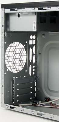На задней стенке шасси предусмотрено посадочное место для установки вентилятора типоразмера 92 или 120 мм. Крепление вентиляторов осуществляется винтами, пылевые фильтры отсутствуют.