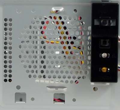 Рядом с блоком управления и индикации, на передней стенке шасси располагается посадочное место для вентилятора типоразмера 80 или 92 мм, при этом физические габариты передней панели вполне позволяют разместить и 120 мм вентилятор, но его установка не предусмотрена.
