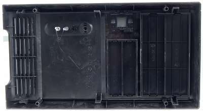 Передняя панель выполнена из пластика черного цвета, окрашенного в массе и имеющего вполне пристойное качество. Серебристые участки окрашены методом напыления. Данное технологическое решение можно считать недостатком, так как окраска методом напыления существенно менее стойка к механическим и химическим воздействиям по сравнению с окраской в массе. Это чревато тем, что с течением времени участки, окрашенные методом напыления, могут истираться, их цвет может неоднородно изменяться (темнеть пятнами). Особенно данное замечание актуально для участков корпуса, имеющих частый контакт с руками пользователя, тут же, как можно заметить, все пространство около кнопок POWER и RESET окрашено именно методом напыления.