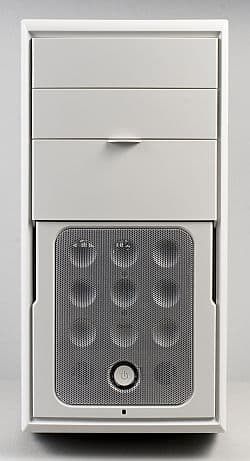 Дизайн корпуса решен в бело-серых тонах, причем оттенки пластика передней панели и боковых стенок корпуса практически не отличаются в местах их сопряжения. В целом, передняя панель смотрится приятно и вполне гармонично.