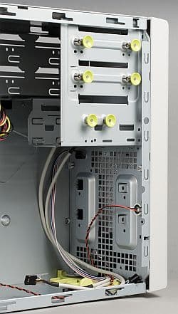 Наши тесты показали, что техническое решение, примененное в данном корпусе для расположения жесткого диска, вполне оправдано для систем малой мощности, и в целом, такие системы могут обходиться без дополнительного корпусного вентилятора.