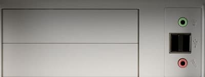 Фронтальные разъемы в числе двух разъемов USB и двух аудиоразъемов расположены, как уже было упомянуто, под шторкой. Такое расположение нельзя признать оптимальным, так как в современном компьютере порты USB весьма активно используются, а подключать некоторые устройства удобнее именно к фронтальным разъемам, причем часто их используют и на постоянной основе, а в этом случае шторка будет открыта все время. Конечно, ничего криминального в этом нет, но с другой стороны, зачем тогда нужна шторка?
