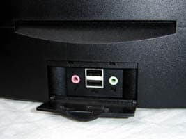 В самом низу лицевой панели, под откидной крышкой, расположены фронтальные USB и аудиоразъемы. Пользоваться ими удобно, если системный блок стоит на столе или на подставке.
