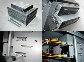 - Закрепить салазки на устройствах. Для оптических приводов используются салазки больших размеров, для FDD — меньших. Крепление салазок для оптических приводов — безвинтовое. Сначала вставляется в отверстие пружинная передняя лапка, а затем непружинная задняя. Если наоборот, то передняя лапка может погнуться. Крепление салазок для FDD осуществляется винтами — по одному винту с каждой стороны. В зависимости от лицевой панели, для установки FDD выбираются салазки типа А (щель) или В (обычный прямоугольный отсек)
