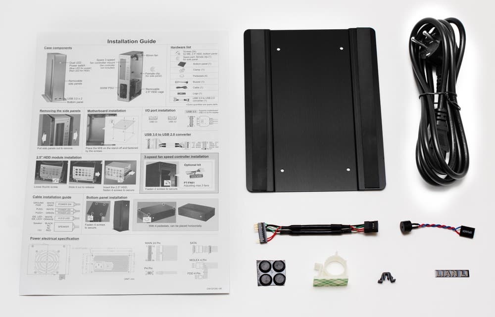 Отличительной особенностью этой модели является очень небольшая толщина, все внутренние компоненты собранного в данном корпусе ПК расположены на одном уровне без каких-либо «наслоений». За качество и избыточность питания отвечает комплектный блок питания форм фактора SFX мощностью 300 Вт.