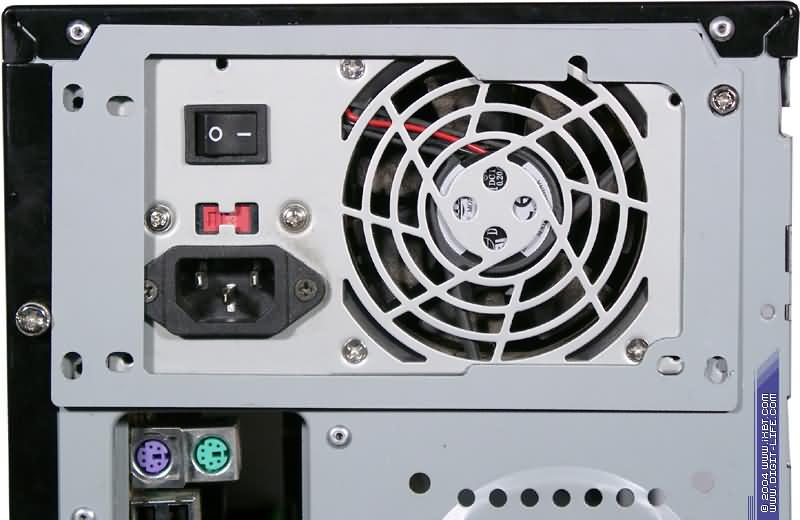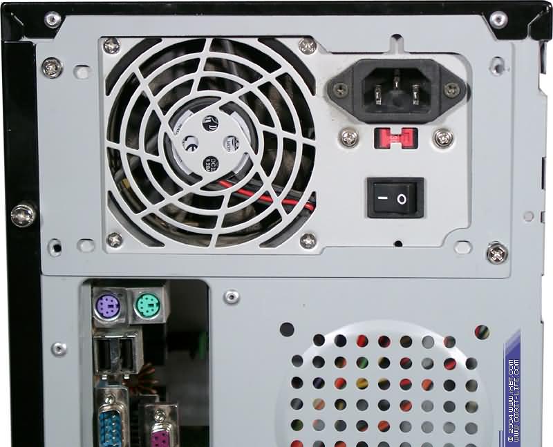 Единственное, что не получилось — сфотографировать горящие лампочки активности жесткого диска и кнопки питания на передней отражающей панели. Само собой разумеется, для фотографии светящегося вентилятора не критично, закреплен БП или нет, а вот для работы… Отсюда мораль: либо сразу требовать при покупке корпус с блоком (причем, дуя на воду, я бы потребовал, чтобы модель совпадала с приведенными выше), либо вооружаться сверлом и дрелью, подаваться в «жестянщики» и ставить тот БП, какой захочется.
