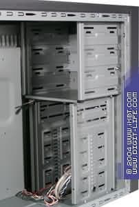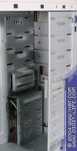 В данном корпусе отсеки 5,25-дюймовых и 3,5-дюймовых посадочных мест выполнены «монолитом», а не двумя самостоятельными блоками; с жестким креплением к шасси. Организация и размещение этих компонентов достаточно оригинальны — в средней части блока установлены пластмассовые съемные «салазки», которые не имеют никакой другой функции, кроме как «смягчение» места крепления 3,5-дюймовых накопителей.