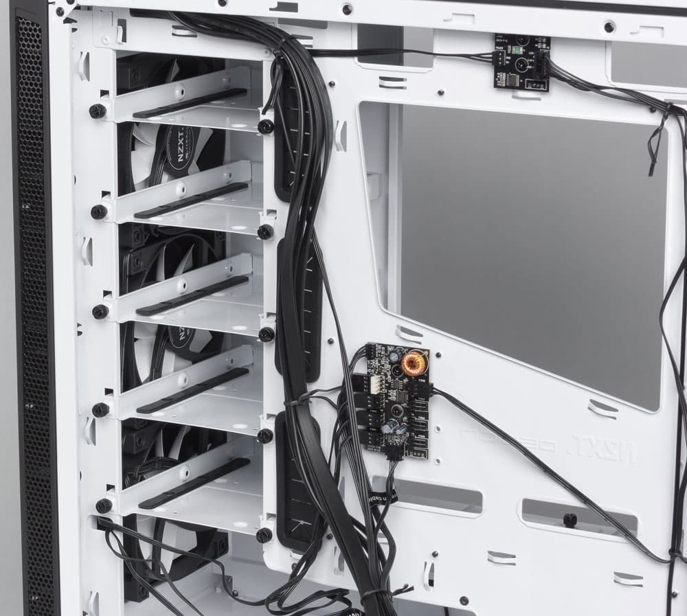 Но в настоящее время компания NZXT уже анонсировала новые версии контроллеров вентиляторов и подсветок, устанавливающиеся в любом месте внутри корпуса и управляемые программно, т.е. не требующие ручного управления и, соответственно, внешних отсеков для размещения органов управления.