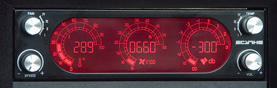 Число шагов регулирования оборотов вентиляторов весьма велико, около 25. Отклик на вращение регулятора не мгновенный, быстрое вращение ручки воспринимается плохо.