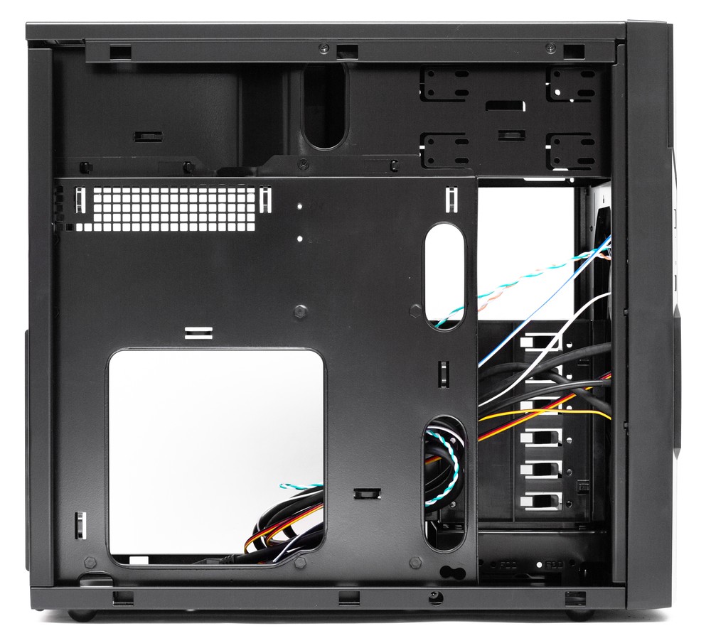 Стоит отметить, что для наиболее аккуратной и эффективной с точки зрения охлаждения укладки нельзя использовать блок питания с короткими кабелями ATX и процессорным SSI, а формат системной платы лучше выбирать именно microATX, а не Mini-ITX, так как у первой разъемы для подключения кабелей, как правило, будут находиться ближе к краям и, соответственно, тем отверстиям для скрытой укладки, которые предусмотрел производитель.
