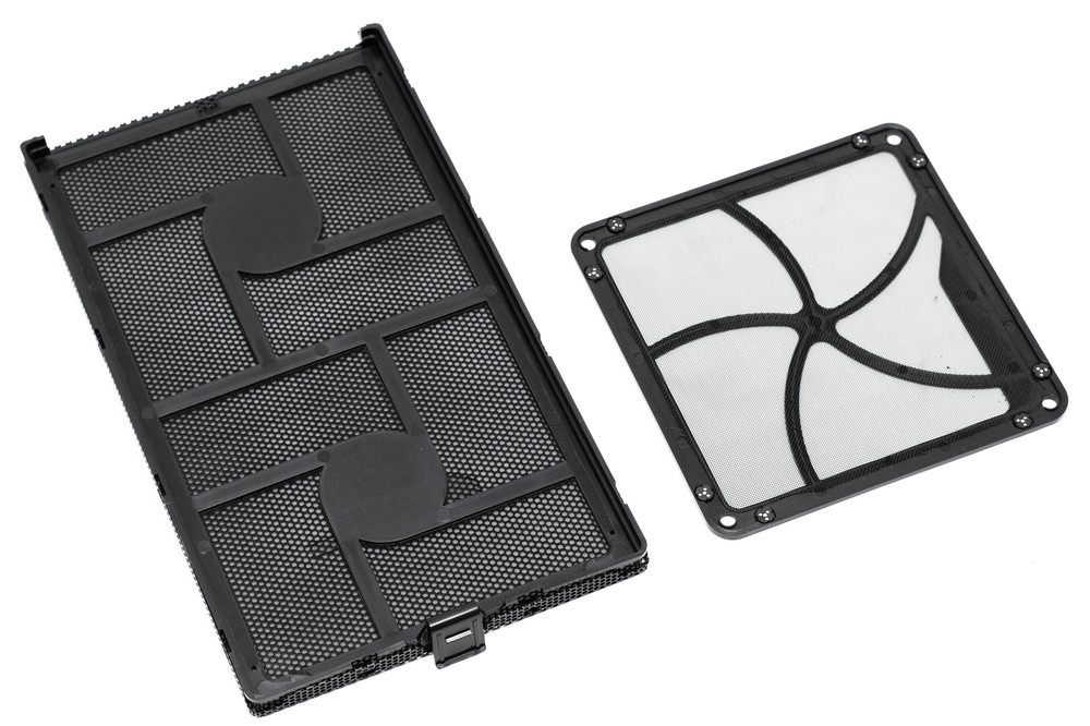 С защитой от пыли у данного корпуса полный порядок. Перед вентиляторами на передней стенке шасси закреплен быстросъемный фильтр из пластиковой мелкоячеистой сетки. Он вмонтирован в рамку с логотипом компании SilverStone, для ее извлечения из корпуса достаточно поддеть одну единственную защелку. Назад фильтр ставится также легко и быстро.