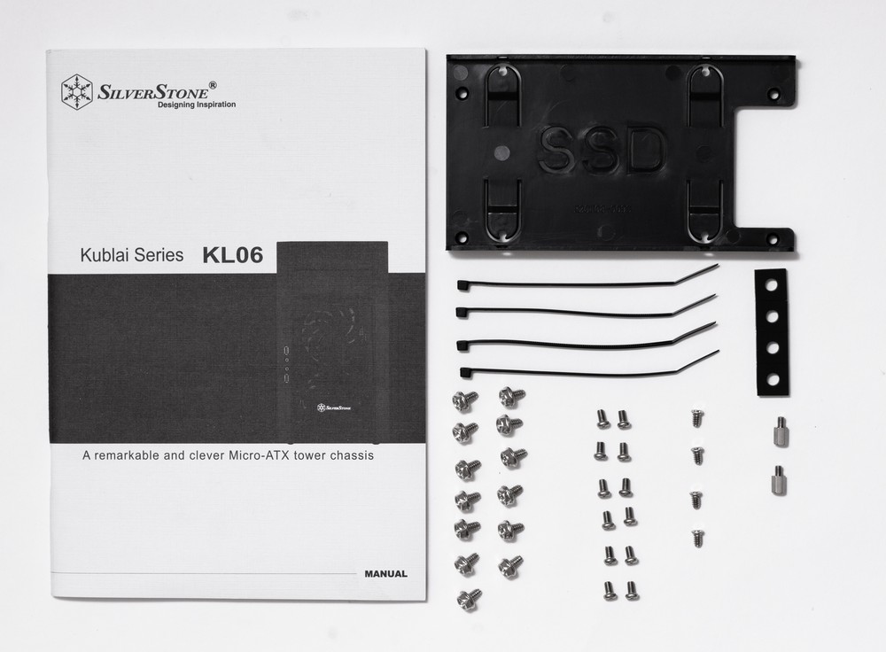 Поставляется Kublai KL06 в коробке из обычного картона без использования цветной полиграфии. Для удобства переноски предусмотрены вырезы на боковых гранях коробки. Комплект поставки, если не считать элементы системы охлаждения, весьма скромный: набор крепежных винтов, несколько одноразовых стяжек, резиновые прокладки под длинную видеокарту, кронштейн для крепления дополнительного 2,5″ накопителя и инструкция по эксплуатации в виде книжки формата А5 на 52 страницах. На русский язык переведено не все, но со всеми этапами сборки можно без проблем разобраться, используя приведенные схемы и поясняющие надписи. Кроме того в инструкции можно найти большое количество полезной информации касаемо ограничений на габариты различных комплектующих и рекомендаций по их подбору от производителя.