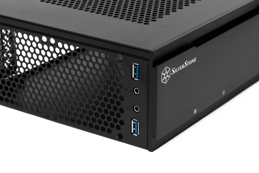 Габариты SilverStone Milo ML06-E — 350 (Д) × 205 (Ш) × 99 (В) мм, а вес без блока питания составляет 2,68 кг, что совсем немало для такого малыша. Лицевая панель выполнена из цельной алюминиевой пластины толщиной 7 мм, остальные элемента шасси изготовлены из 0,8 мм стали, что даже избыточно много для столь небольшого корпуса. Все детали ощущаются очень прочными, ни о каких прогибах и дребезге говорить, к счастью, не приходится.