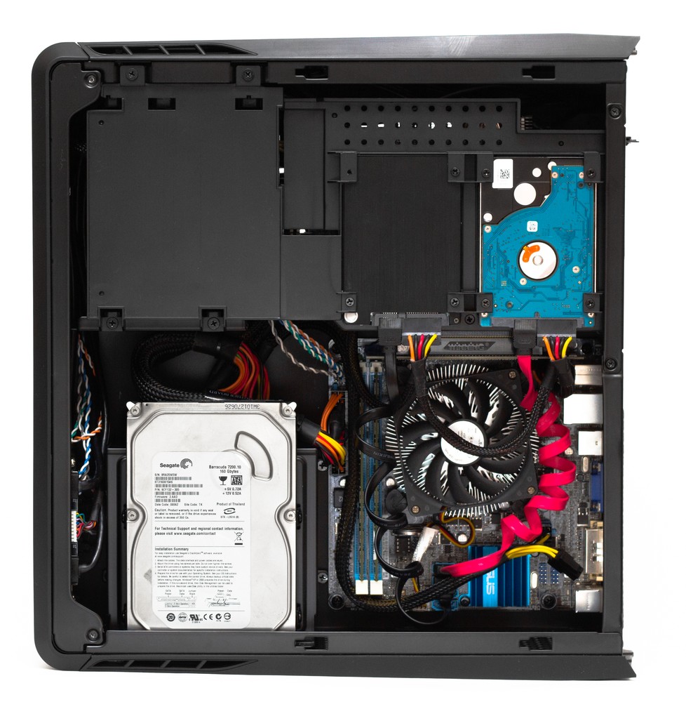 Эта конфигурация является унифицированной для тестирования всех малогабаритных корпусов, поэтому в нее входит 2,5″ жесткий диск и процессорный кулер с высотой, близкой к минимальной.