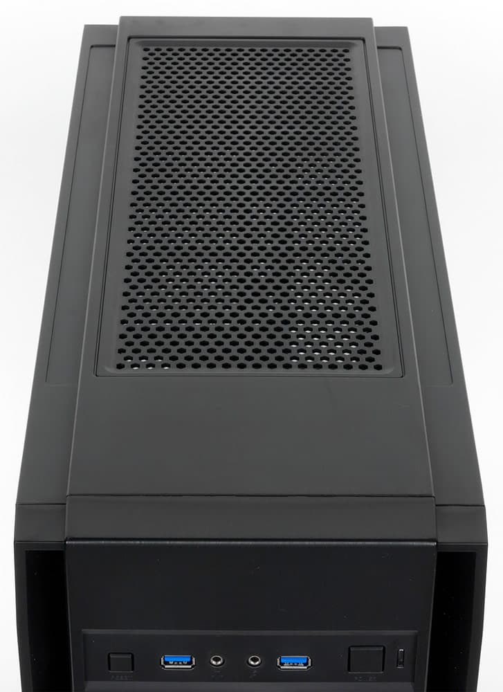 Корпус явно бюджетный, но в данном случае это не упрек, а «точка отсчета» для оценки. Да, оснащенность оставляет желать лучшего: и портов ввода-вывода маловато — всего пара USB 3.0, и комплектный вентилятор единственный, хоть и с подсветкой (не всем, кстати, нужной), к тому же и набор принадлежностей откровенно бедный — нет даже спикера для системной платы.