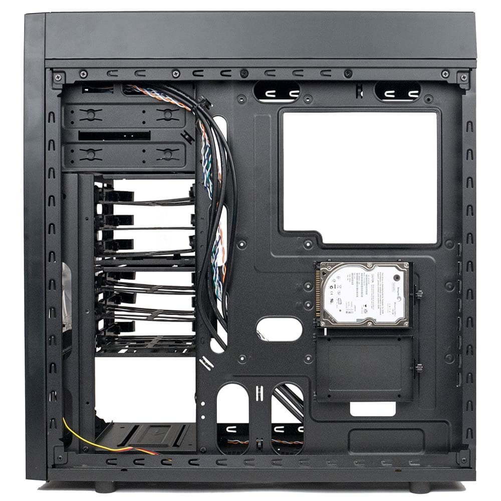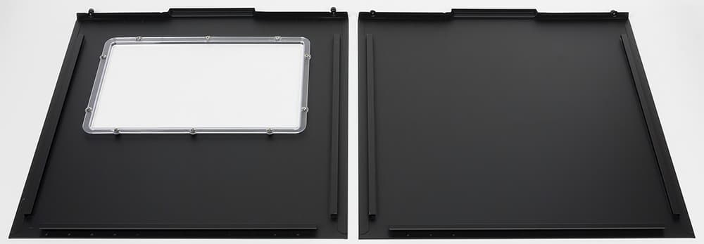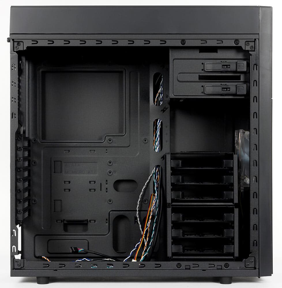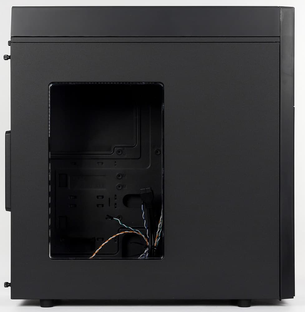 Для крепления боковых крышек корпуса не используется привычная система пазов и гребенок, недостатки которой известны и очевидны. Использовано более редкое решение: у верхнего и нижнего краев крышки изнутри имеются выступы с П-образным сечением, которые не только являются направляющими при установке, но еще и придают крышкам дополнительную жесткость, предотвращая появление щелей между горизонтальными кромками стенок и корпусом — именно этому служат и пазы с гребенками в других корпусах.