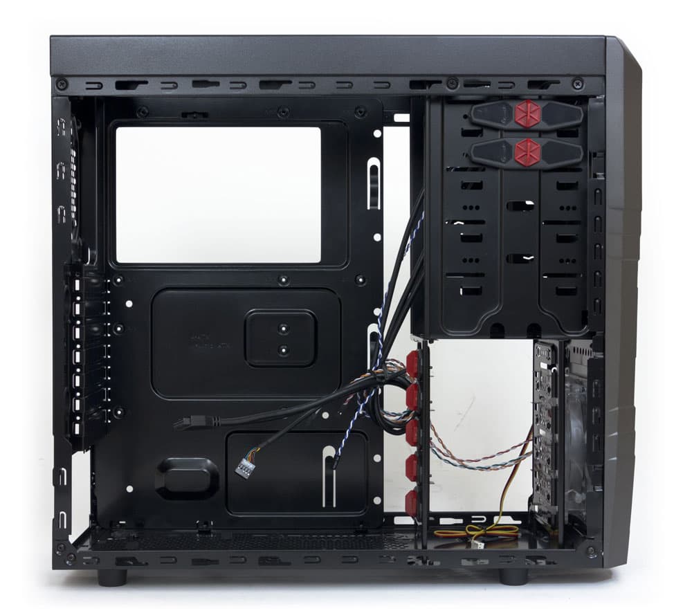 Три из четырех 5-дюймовых слотов имеют заглушки в шасси, которые при необходимости нужно выламывать. Правда, сделать это очень просто: заглушки крепятся всего в двух точках. Кромки металлических конструкций завальцованы или скруглены, и потому риск повреждения рук при сборке минимален.