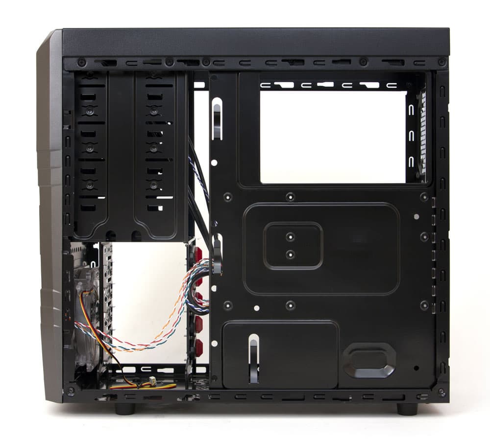 В области процессора подложка системной платы имеет большой вырез, который позволит устанавливать или снимать некоторые типы кулеров без снятия самой платы. Жесткость подложки, как и в случае с боковыми стенками, оставляет желать лучшего.