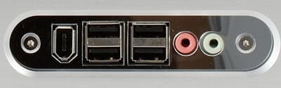 На передней панели расположены помимо кнопок включения и перезагрузки, также фронтальные разъемы ввода/вывода в составе:
