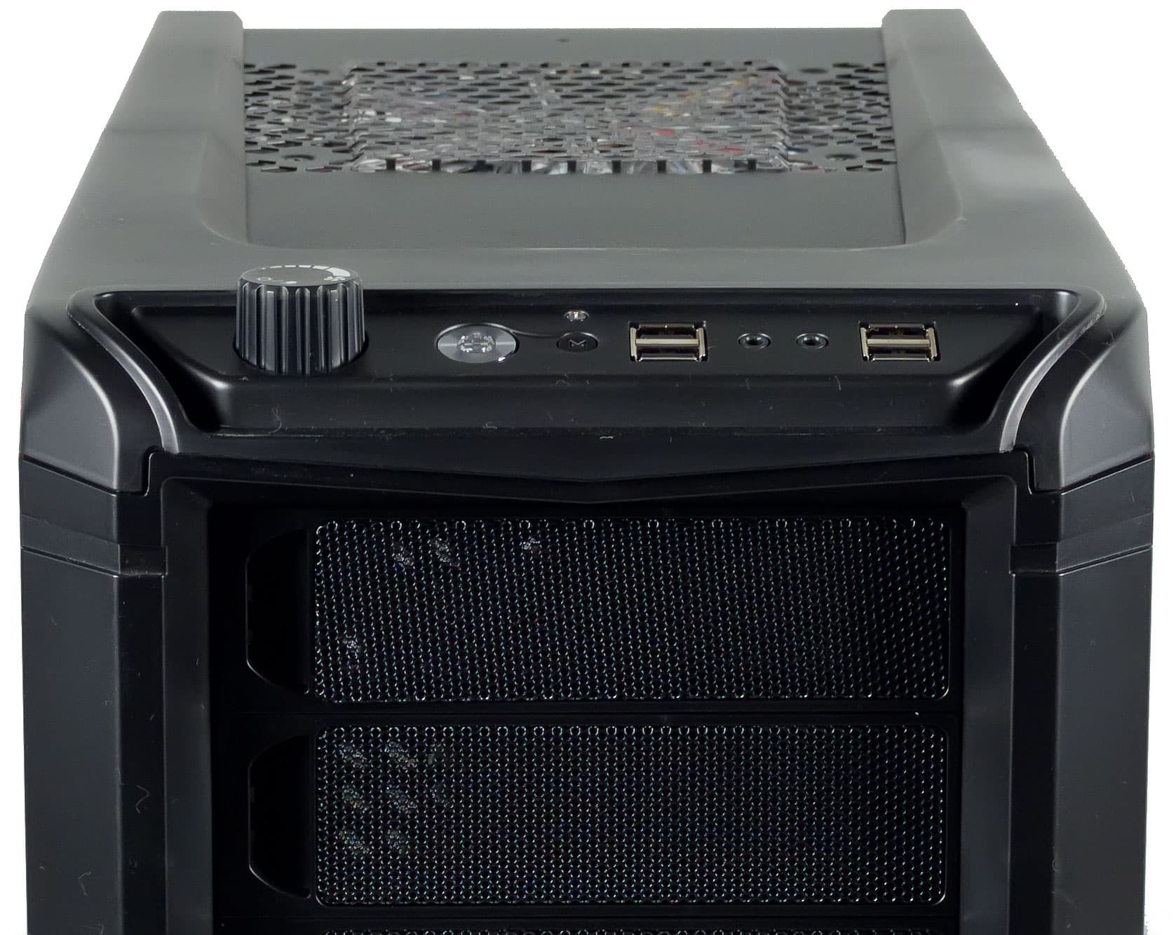 К особенностям корпуса также стоит отнести одноканальный контроллер скорости вращения вентиляторов со встроенным выключателем подсветки вентиляторов — нечто подобное мы уже наблюдали у другого геймерского корпуса — CM Storm Sniper. Несмотря на то, что подобные системы управления иногда встречаются, тем не менее, сталкиваемся мы с ними довольно редко, даже с учетом их простоты и дешевизны.