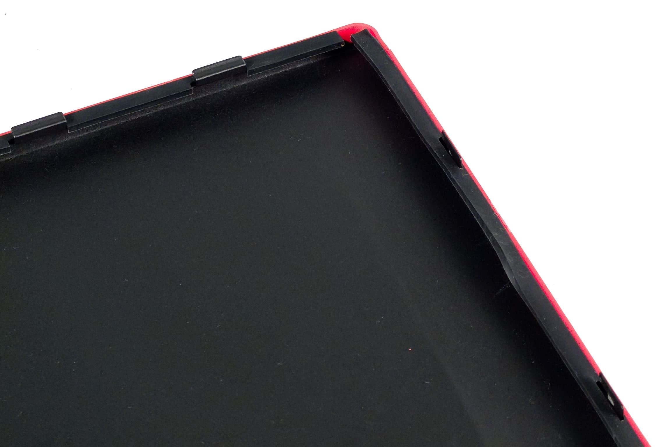 Снаружи корпус выглядит интересно, в том числе благодаря красной пластиковой окантовке боковых панелей, которые выполняют не только чисто декоративные задачи, но и служат в качестве уплотнителя в месте контакта боковых панелей и шасси корпуса, боковая часть зоны контакта обрезинена.