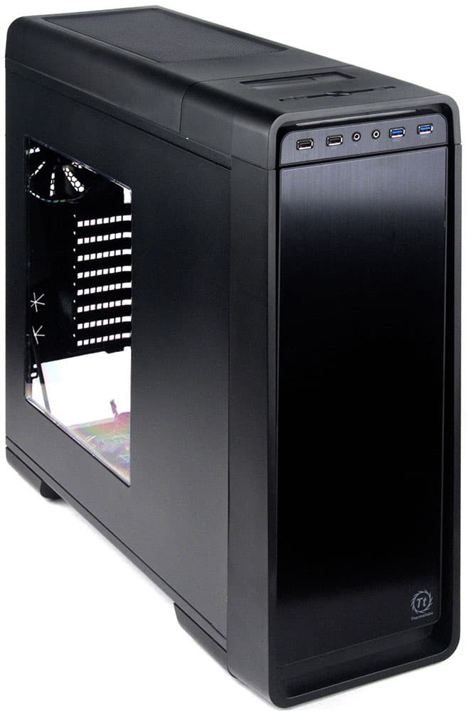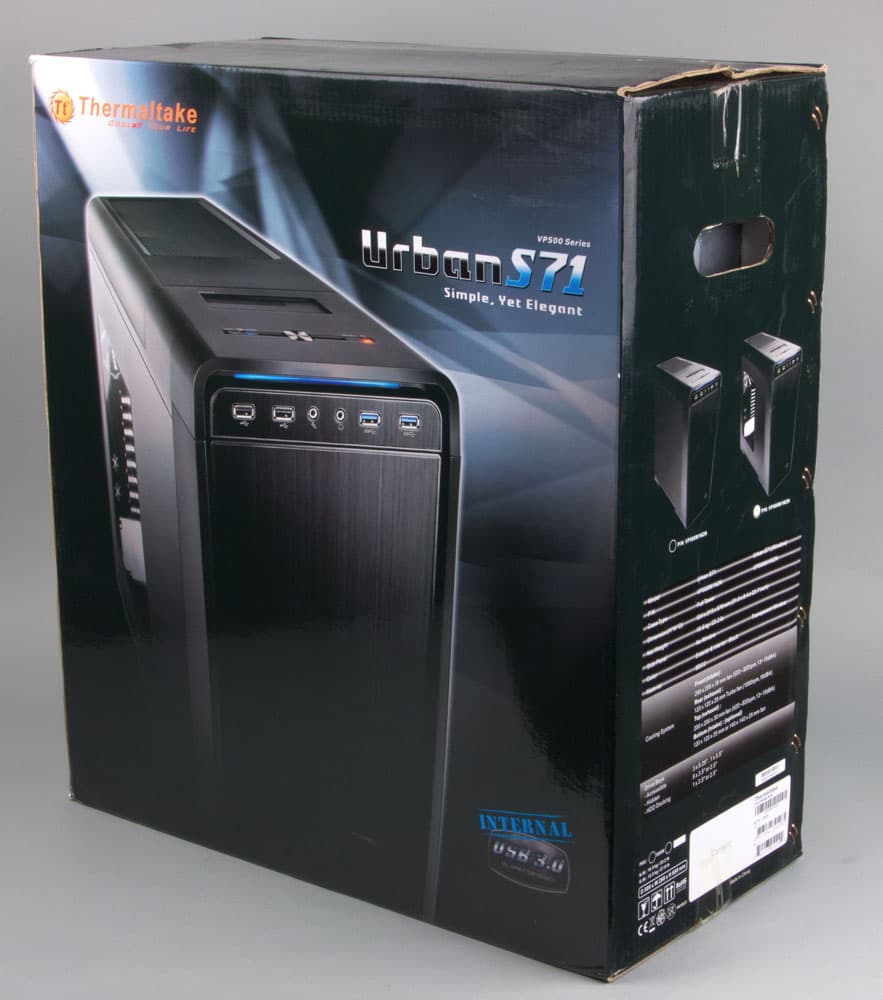 Данная модель была представлена производителем относительно недавно — в марте прошлого года на на выставке CeBIT 2013, и на официальном сайте для нее до сих пор стоит пометка «из новой коллекции». Тем не менее, корпус Thermaltake Urban S71 уже широко представлен в торгующих организациях России, причем в двух вариантах: со сплошной левой боковой стенкой и с окном из прозрачного оргстекла, занимающим примерно половину ее площади (именно такой нам и достался). Отличить их в прайс-листах можно по буквенно-цифровому индексу модели: VP500M1W2N (с окном) и VP500M1N2N (со сплошной стенкой).