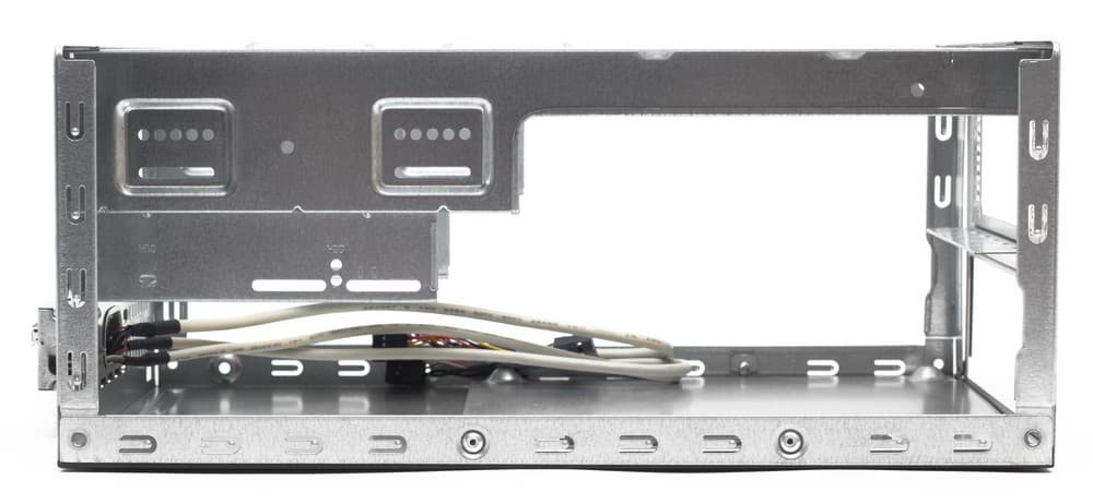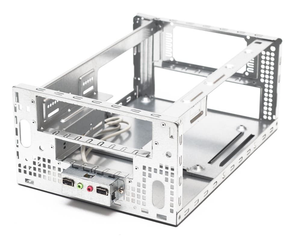 Корпус представляет собой однообъемную конструкцию, единственным заметным отличием которой от классического microATX-корпуса является расположение подложки системной платы на нижней стенке корпуса, а не на боковой.