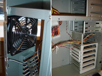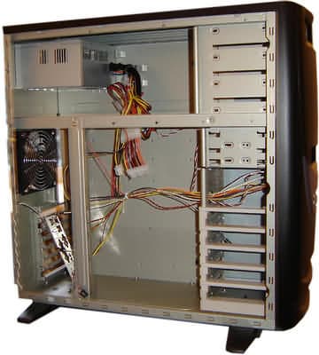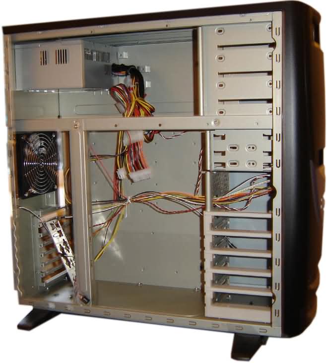 Внутри корпуса очень просторно (еще бы, при таких-то размерах!). Благодаря большой высоте расстояние между блоком питания и материнской платой составляет около 10 сантиметров, а это значит, что не будет проблем с установкой больших производительных процессорных кулеров (например, Zalman CNPS7700-Cu). Также не возникнет трудностей при установке длинных пятидюймовых устройств (например, мобильное шасси для жесткого диска).