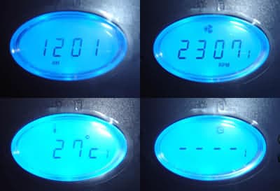 Изображение на дисплее четкое, различимо при любых условиях освещения. Подсветка дисплея — ярко-синего цвета. Она горит всегда, когда блок питания включен и на материнскую плату идет дежурное напряжение. Кому-то это может не понравиться. Следовало все-таки предусмотреть возможность отключения подсветки. Если отключить компьютер от сети, то все настройки (время, скорость вентиляторов, будильники) сбрасываются. Хотя наличие батарейки могло бы исправить эту ситуацию. Опять-таки непонятная экономия.