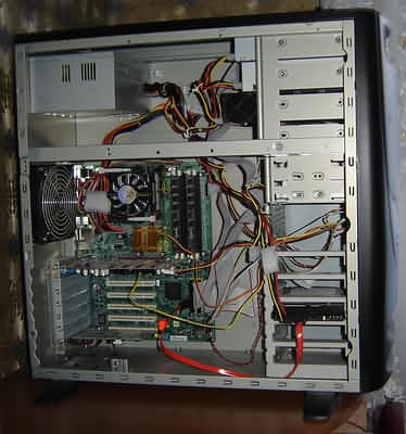 Установив все комплектующие, начинаем их подключение. И тут выясняются 2 момента. Во-первых, для подключения верхних пятидюймовых устройств потребуются длинные IDE шлейфы. Стандартные (например, идущие в комплекте с материнской платой EPoX EP-4PDA3I IDE шлейфы длиной 50 см) не позволяют подключить 2 пятидюймовых устройства. Нельзя назвать это большой проблемой, т.к. в продаже встречаются интерфейсные шлейфы длиной 60-90 см. Причем, как обычные плоские, так и особо популярные в последнее время <круглые> шлейфы. Во-вторых, длины проводов блока питания для подключения винчестеров явно недостаточно. Придется использовать переходники или удлинители.