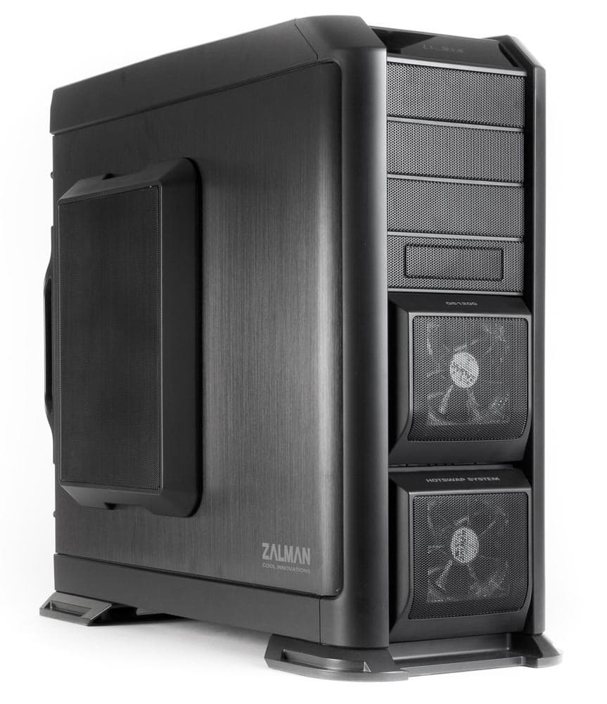 Компания Zalman, известный производитель систем охлаждения, оснастила корпус пятью вентиляторами собственного производства, четыре из которых (исключая расположенный на задней панели) имеют неотключаемую синюю светодиодную подсветку.