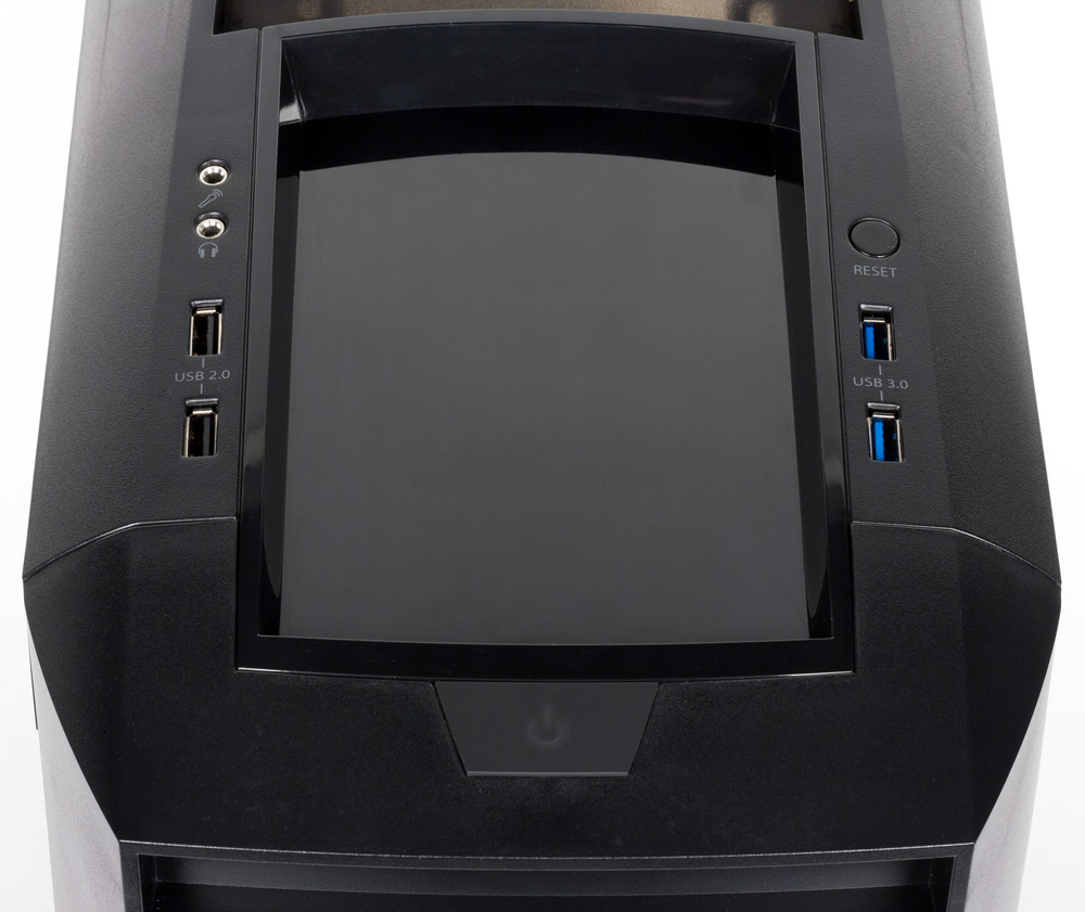 Справа от ниши расположены два разъема USB 3.0 и кнопка Reset, слева — два порта USB 2.0 и пара аудиоразъемов. Поскольку корпус стал немного выше, то при настольном его размещении пользоваться USB-портами, не вставая, сможет лишь достаточно высокий человек.