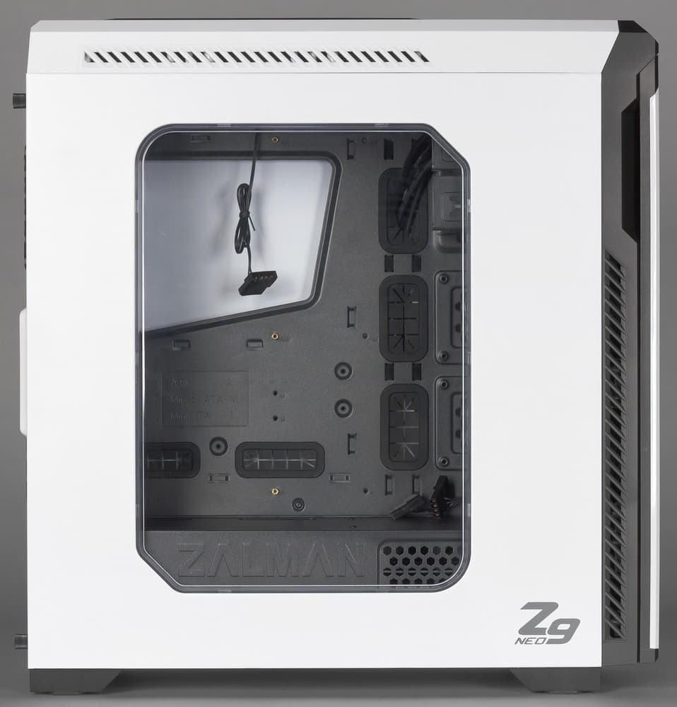 Все пространство в средней части корпуса оставлено свободным, чтобы не мешать установке двух или даже трех видеокарт длиной до 420 мм каждая. Таким образом, Zalman Z9 Neo White может претендовать на роль неплохой основы для построения как игровой системы, так и продвинутой рабочей станции, чему способствуют 7 слотов для плат расширения и возможность установки до 6 дисковых накопителей, 4 из которых могут быть полноразмерными, вместительными HDD.