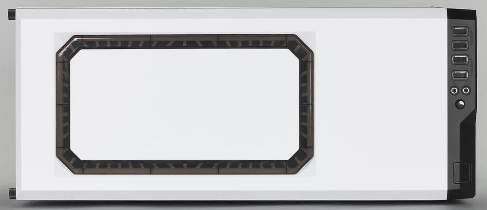 Передняя панель Z9 Neo White полностью прикрыта пластиковой дверцей, внешнюю сторону которой украшает (и усиливает) стальная пластина, выкрашенная в белый глянец. Дверца открывается чуть больше чем на 90 градусов. На ее внутреннюю сторону установлена звукоизоляционная прокладка из мягкого, похожего на резину материала. В закрытом положении дверцу удерживает пара достаточно мощных магнитов, а для удобства открытия предусмотрен небольшой вырез в верхней части.