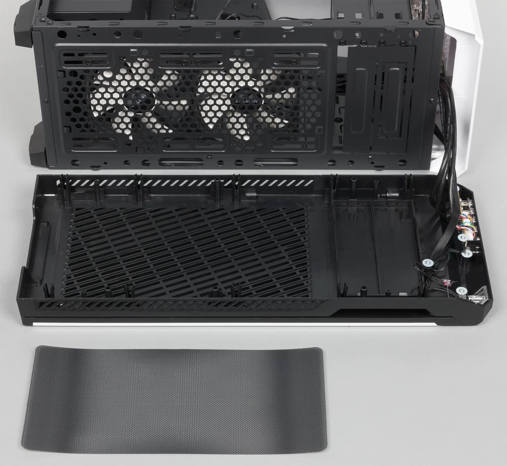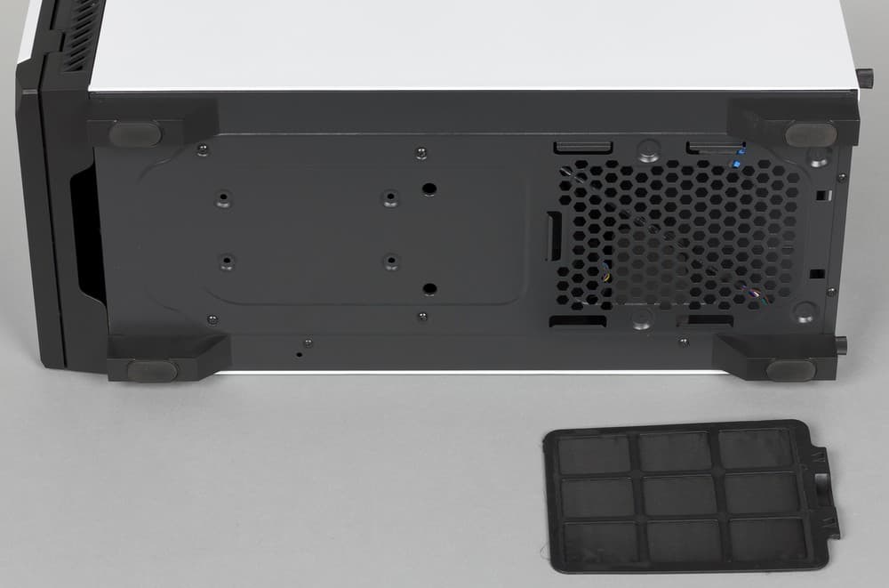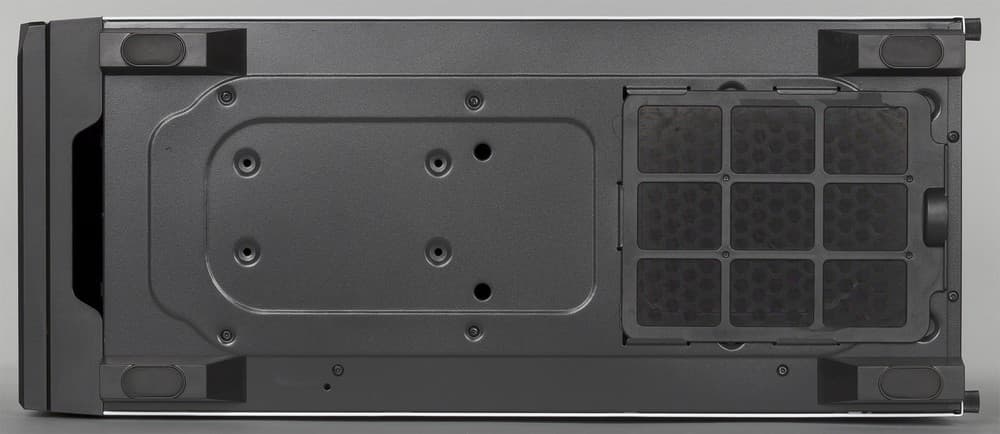 Для защиты от пыли в корпусе применяется два пылевых фильтра: один на нижней стенке и еще один на передней. Фильтр на нижней стенке является быстросъемным, он защищает от пыли вентилятор блока питания. Сетка данного фильтра имеет очень маленький размер ячейки, благодаря чему фильтр должен работать действительно эффективно.