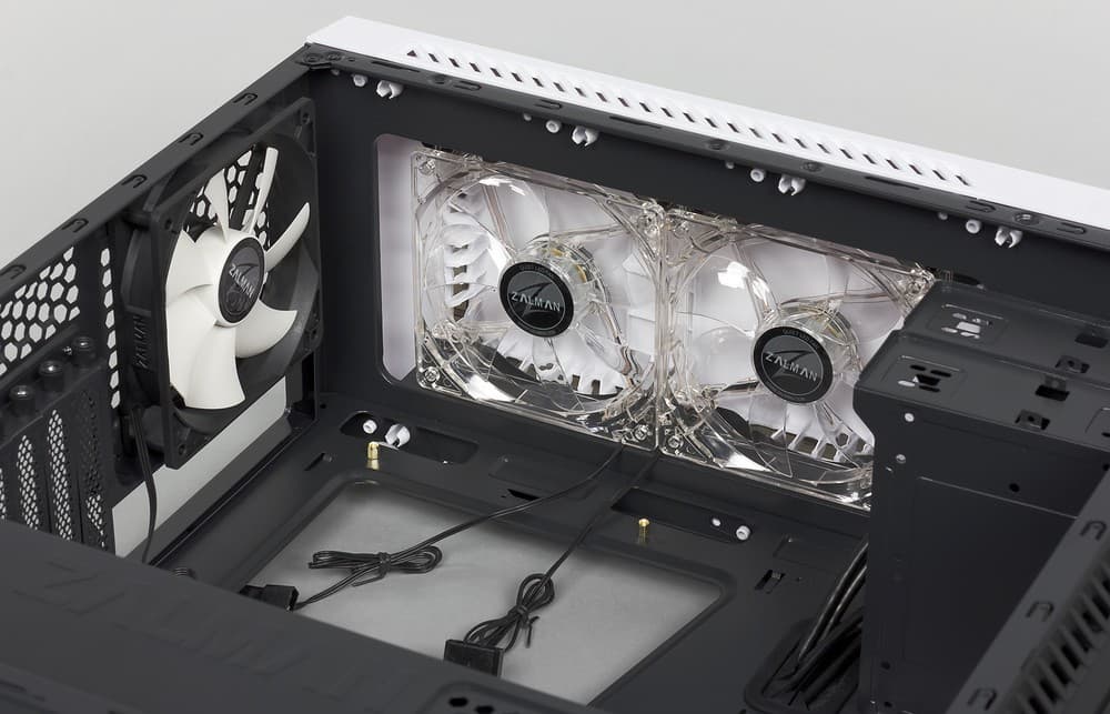 Zalman Z9 Neo White предусматривает установку 5 корпусных вентиляторов, что для современного корпуса формата miditower вполне привычно. Куда менее привычно видеть все 5 вентиляторов, идущих сразу в комплекте поставки, при этом 2 из них еще и с подсветкой.