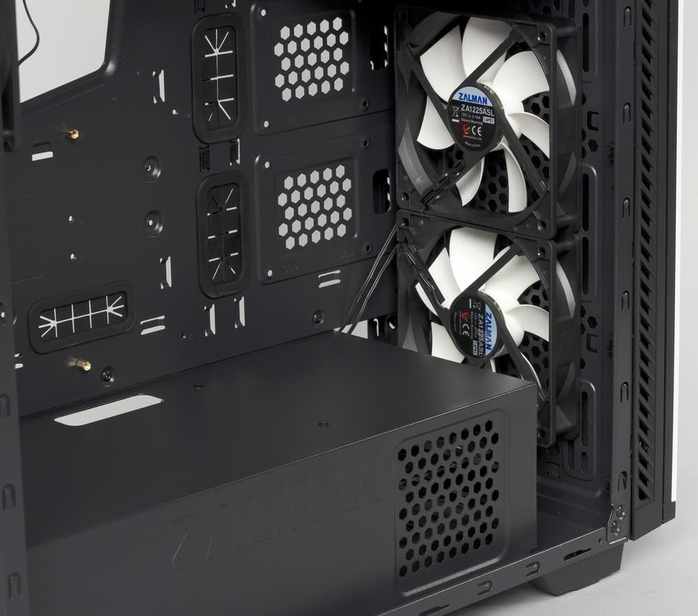 Предложенная проектировщиками Zalman Z9 Neo White компоновка шасси не является уникальной, скорее наоборот: в последнее время она становится все более популярной для miditower-корпусов данной ценовой категории. Большое количество медленных корпусных вентиляторов — это неоднозначное решение. Вполне возможно, такого же воздушного потока можно добиться значительно меньшим числом «ветродуев», выиграв при этом еще и по общему уровню шума.
