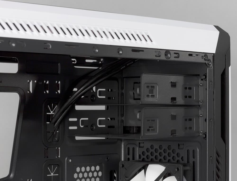Весит корпус относительно немного — всего 5,9 кг. Его боковые стенки выполнены из качественной стали толщиной 0,7 мм, чего нельзя сказать обо всех внутренних элементах шасси. Для большей их части применяется сталь толщиной 0,6 мм, и это заметно сказывается на их прочности и устойчивости к прогибам. Также свои коррективы в массо-габаритный коэффициент Z9 Neo White вносит большая акриловая вставка на левой стенке и крышка корпуса, выполненная из пластика. К счастью, прочность корпуса остается достаточной для того, чтобы во время его работы не возникало никаких дребезжаний и других посторонних призвуков.