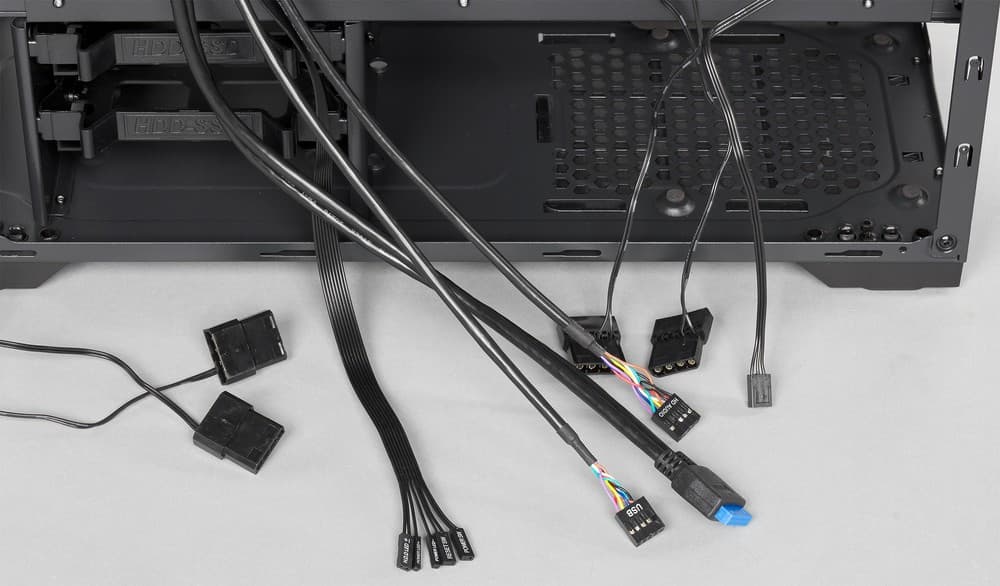 В связи с тем, что из пяти разъемов, предназначенных для питания вентиляторов, только один можно штатно подсоединить к системной плате, чтобы управлять скоростью вращения вентиляторов, а остальные два разъема подключаются напрямую к блоку питания без возможности какой-либо регулировки, у пользователя данного корпуса могут возникнуть определенные неудобства при желании снизить уровень шума штатной системы охлаждения относительно номинала.