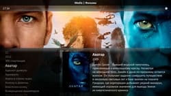 Для каждой картины скачивается обложка, описание, состав актеров, режиссер, год выхода, продолжительность, оценка IMDB, возрастной рейтинг, жанровая принадлежность. Для большинства картин (в особенности современных) дополнительно скачиваются качественные «задники», отображающиеся во время просмотра подробной информации.