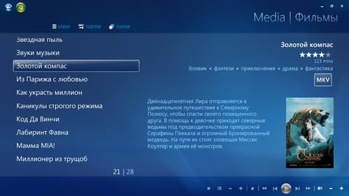 Но не стоит расстраиваться, ведь приложив относительно немного усилий и вложив небольшую сумму денег, можно перейти к самому интересному, хотя и более сложному, варианту — использованию HTPC в качестве главного устройства в домашнем кинотеатре. Его основное отличие состоит в переходе к управлению мультимедийными возможностями ПК исключительно с помощью пульта, а также отображению имеющейся в наличии коллекции видео в самом лучшем виде: с описанием, обложками и постерами, причем на русском языке и получаемыми в автоматическом режиме через интернет. При этом в качестве программного плеера может быть использована одна или несколько программ, выбранная и настроенная исключительно по личным пристрастиям пользователя.