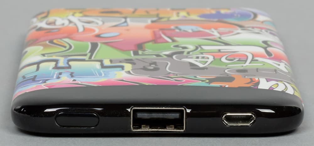 Упаковано устройство в хорошо оформленную коробку из качественного картона, на которой на разных языках (включая русский) перечислены основные параметры. Правда, здесь не обошлось без неточностей. Так, имеющийся на лицевой стороне значок «USB x 2» можно воспринять как свидетельство наличия двух USB-выходов, а указанные там же примерные значения «сколько раз можно зарядить от полностью заряженного внешнего аккумулятора то или иное устройство» исходят из очень уж скромных потребностей — например, для смартфонов отмечено, что можно заряжать до 4 раз, но есть сноска: батарея смартфона должна иметь емкость всего в 1260 мА·ч, в то время как для современного смартфона и 2000 мА·ч считаются низкой величиной.